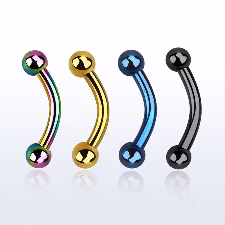 Banana / böjd stav för bland annat ögonbryn och navelpiercing.Eloxerad 316L Kirurgiskt stål.14gauge - 1.6mm. 3mm kulor.