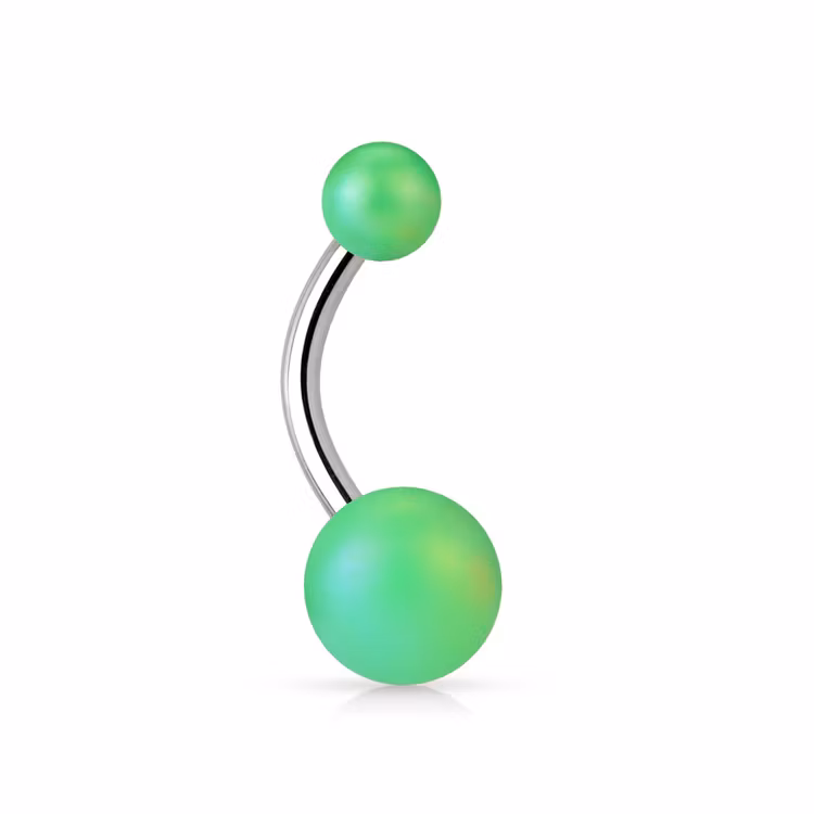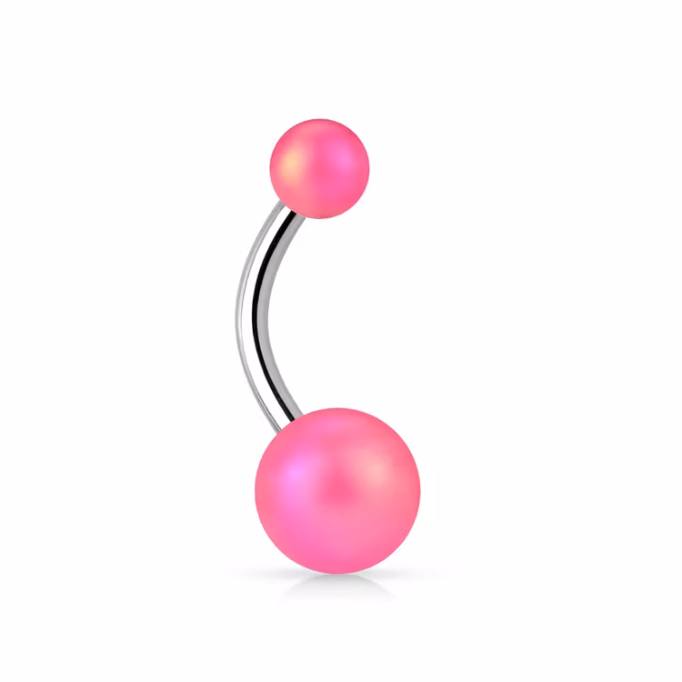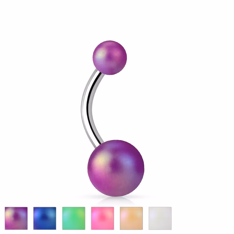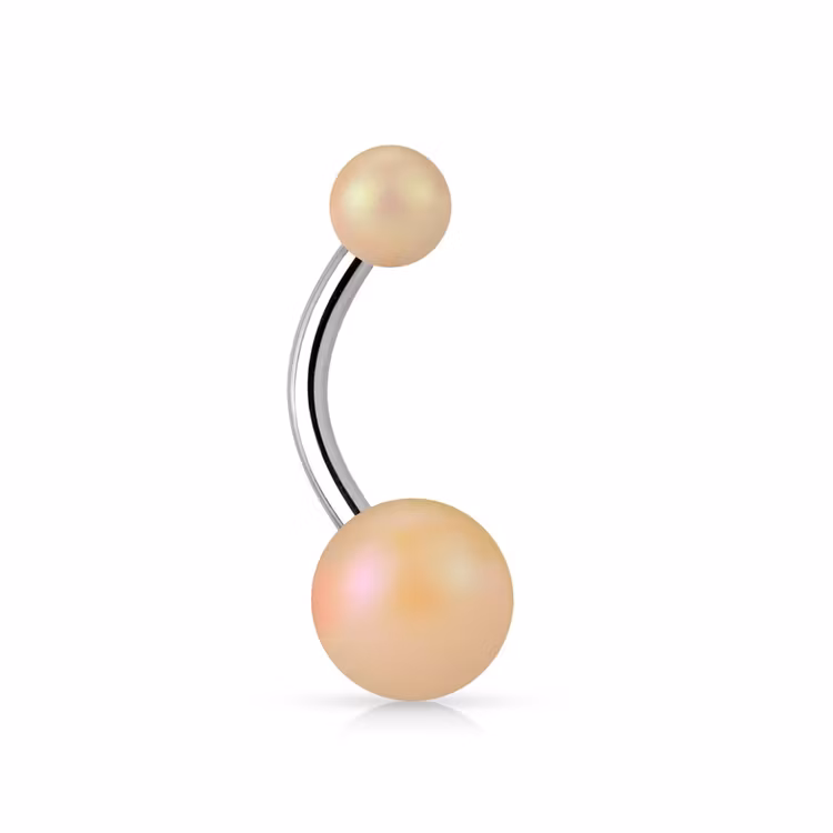 Banana / Navelsmycke i 316L Kirurgiskt stål.14gauge - 1,6mm. 10mm lång. 5 & 8mm pärlemorfärgade kulor.