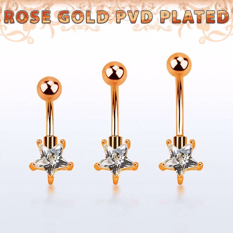 Navelsmycke med 7mm stjärnformad klar cubic zirconia roséguld