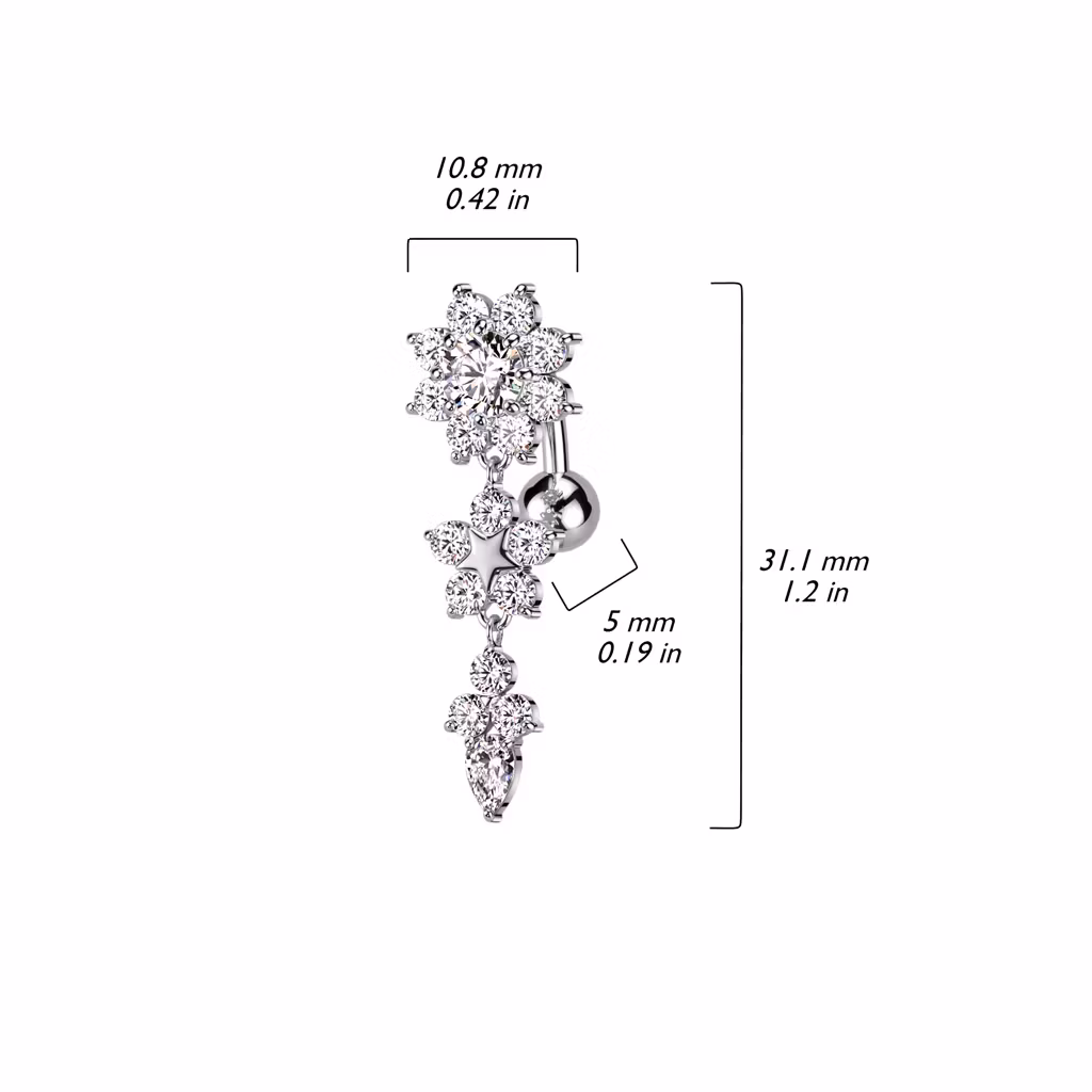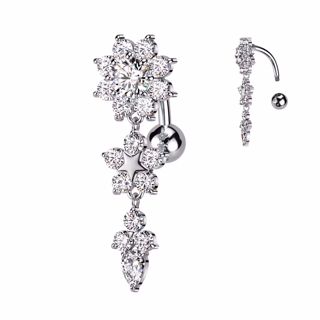 Navelsmycke i 316L kirurgiskt stål. Smyckesdelen är 302L förgylld mässing.